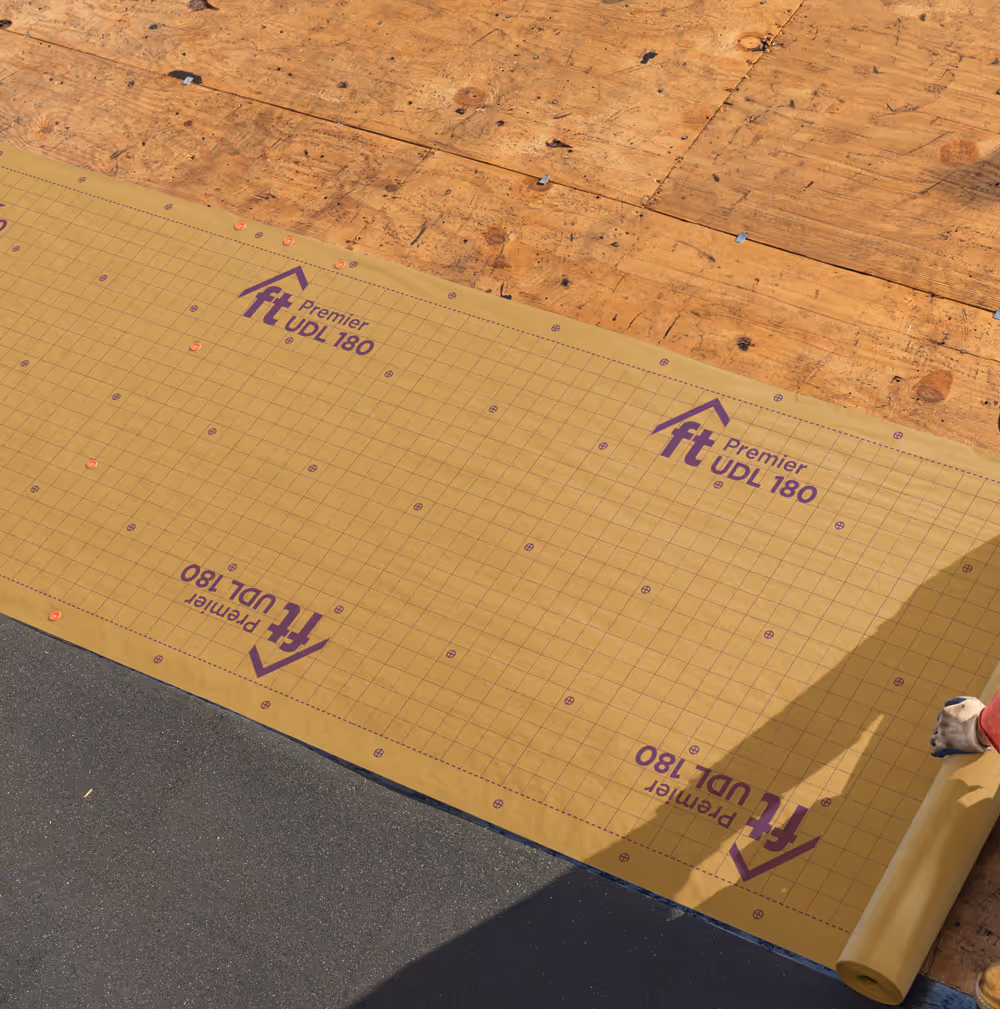 Our mechanically attached underlayments help protect against leaks caused by wind-driven rain. Tough polyolefin construction provides water and UV resistance, while back coating offers slip resistance to help product lay flat and stay put. And every FT Solutions product features GripSpotTM technology for enhanced foot traction.